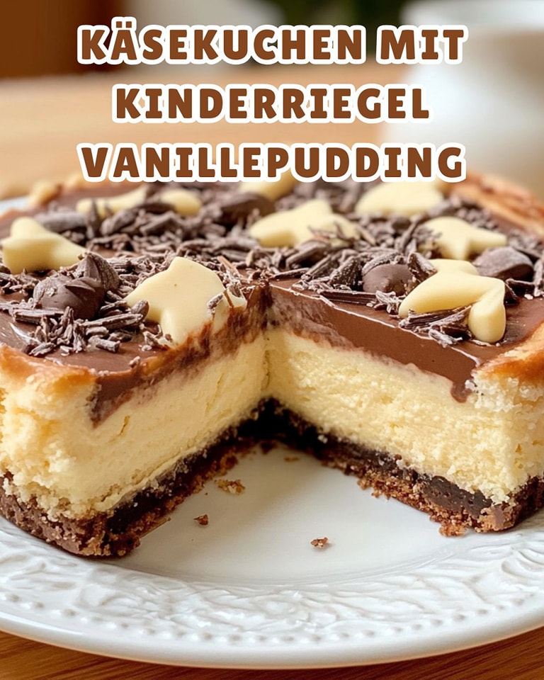 Käsekuchen mit Kinderriegel & Vanillepudding
