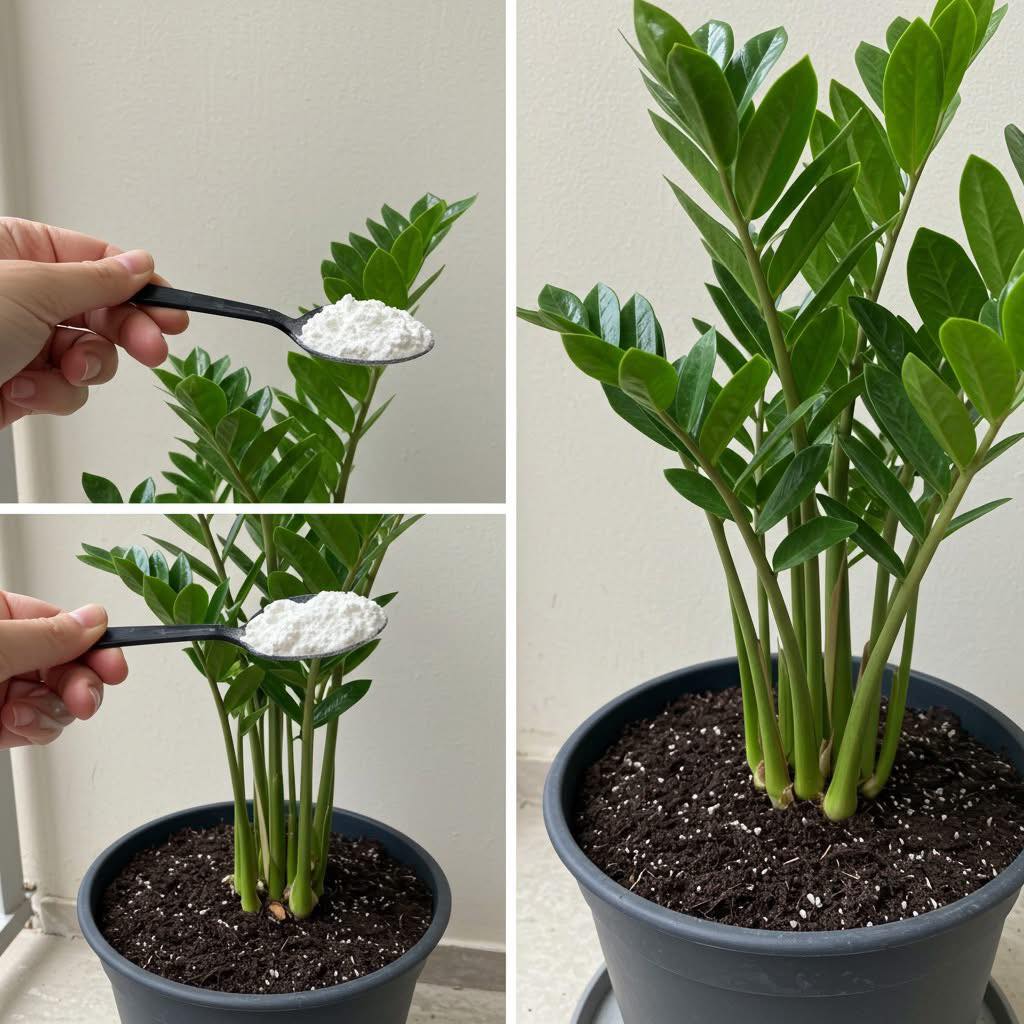 Knochenmehl hinzufügen: Geben Sie einen gehäuften Löffel Knochenmehl in das Wasser. Diese Menge ist dank der hohen Konzentration an Phosphor und Kalzium, die für Wachstum und Blüte unerlässlich sind, ausreichend für eine effektive Wirkung.